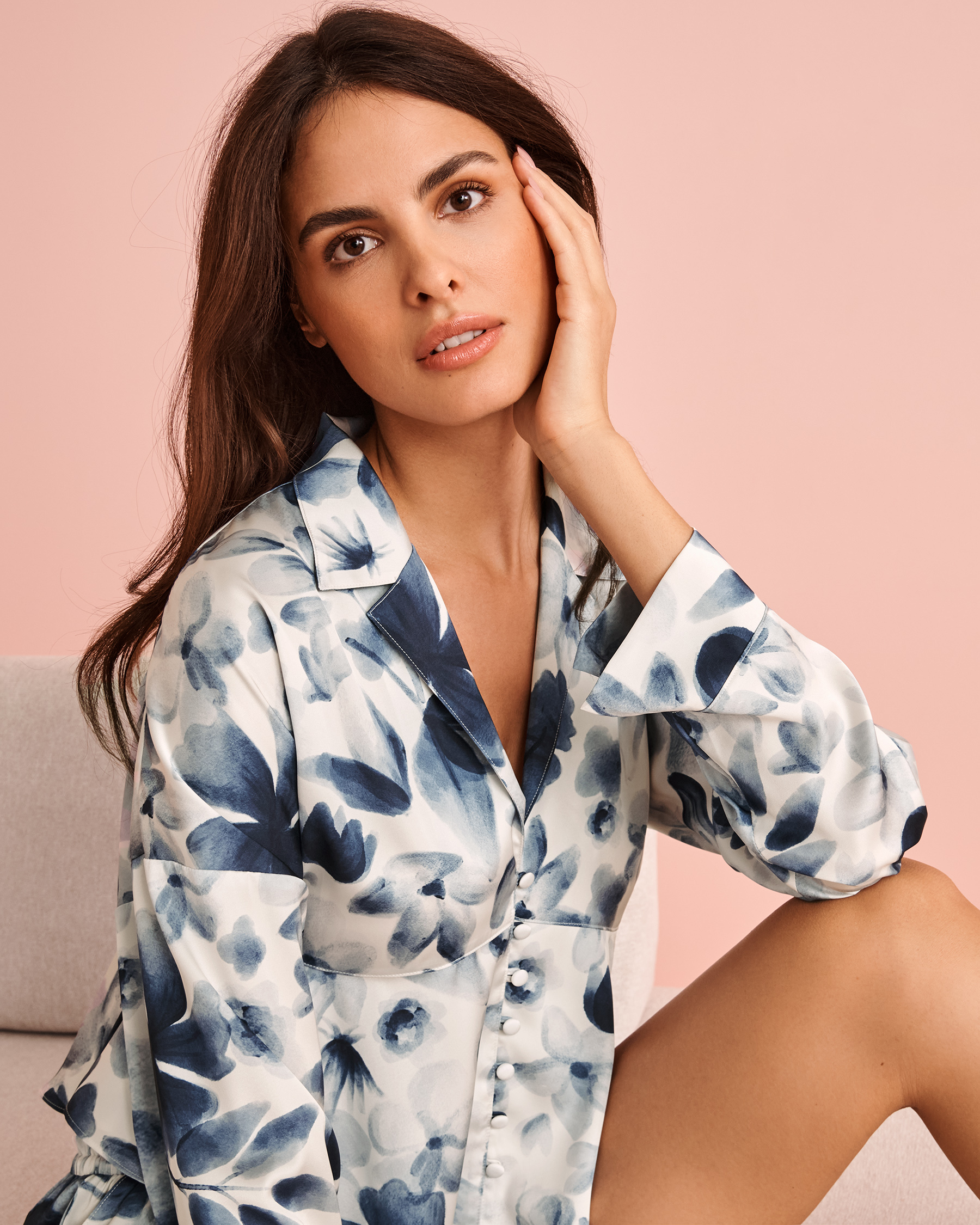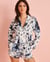 The rich blooming print elevates this satin shirt to a whole new level of chic. And because comfort is key for the perfect lounging outfit, it features a flared design.