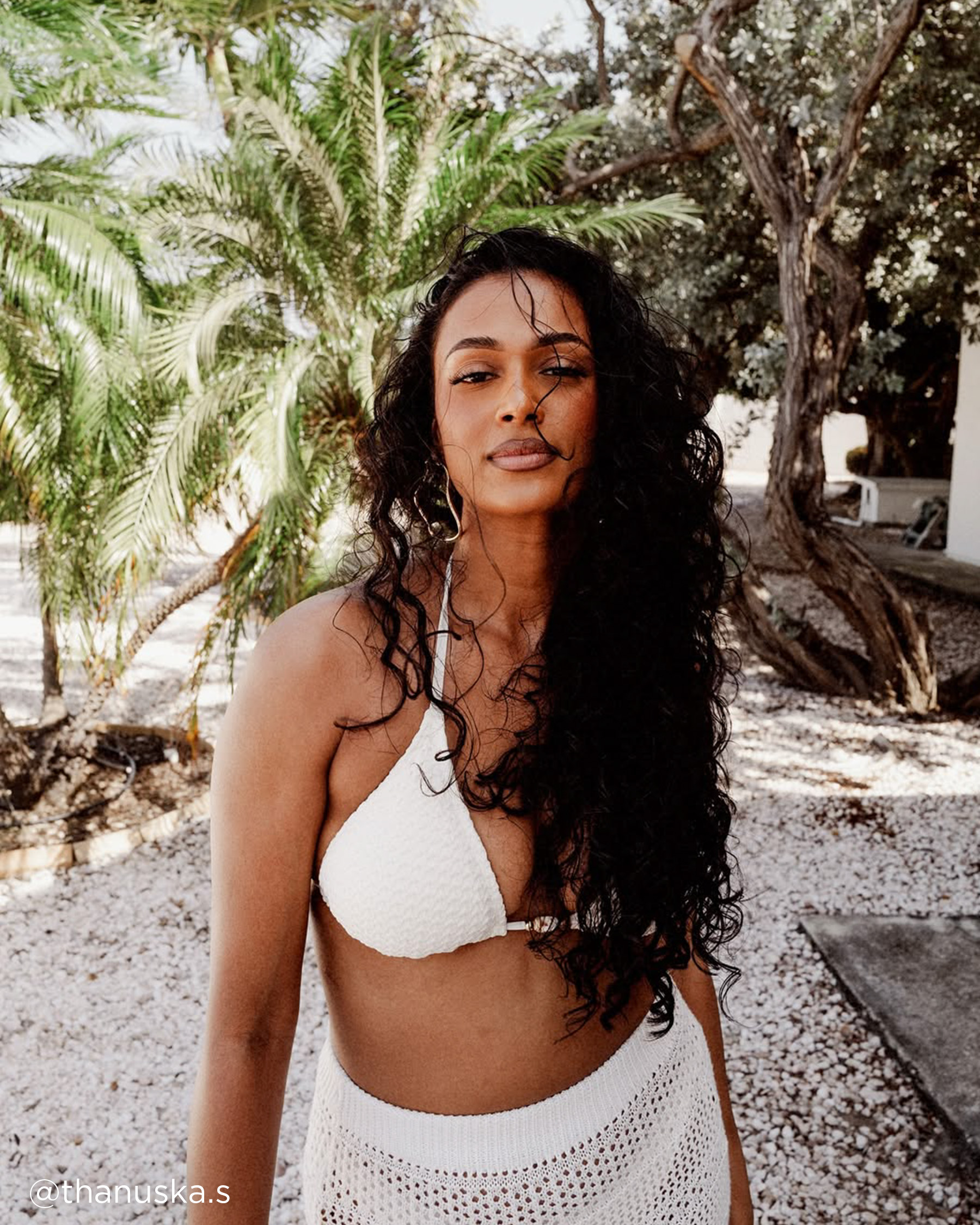 The triangle bikini top is a staple that will never disappoint. Unwired, it promises comfort and a natural effect for all shapes. This one has rosette details on the straps for a romantic twist. To take good care of your favourite swimwear, visit our Care Instructions page.