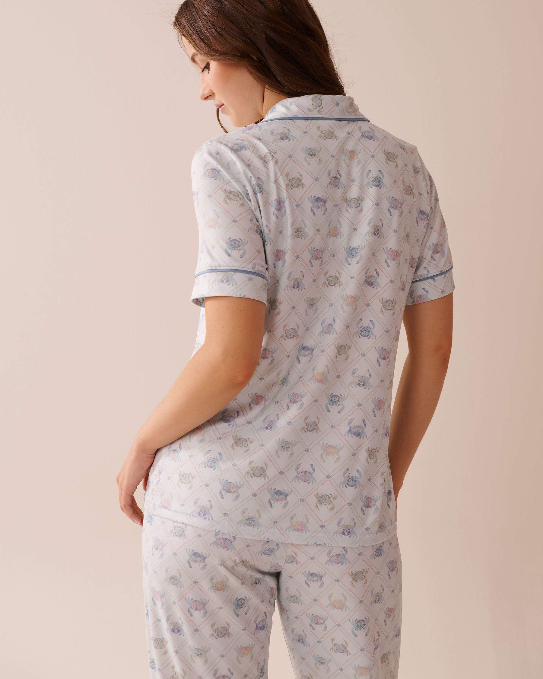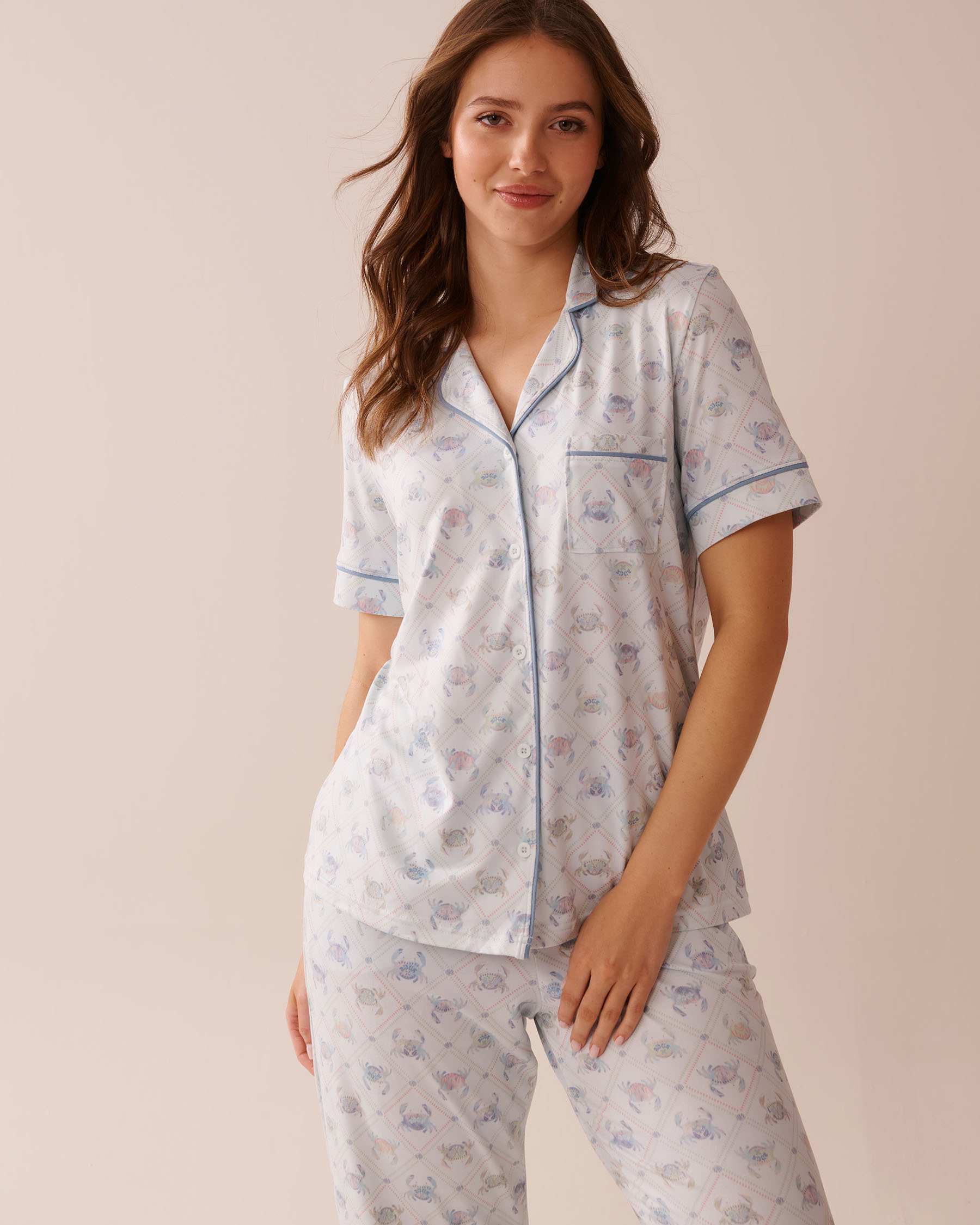 Think pastel hues like a sunrise by the sea, sea-inspired patterns with a cute twist... Our peachy dream pajamas – the ones we all love for their incredible softness – get a seasonal update. This shirt strikes the perfect balance between laid-back charm and sophisticated style.