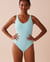 CYAN BLUE Textured V-neck One-piece Swimsuit