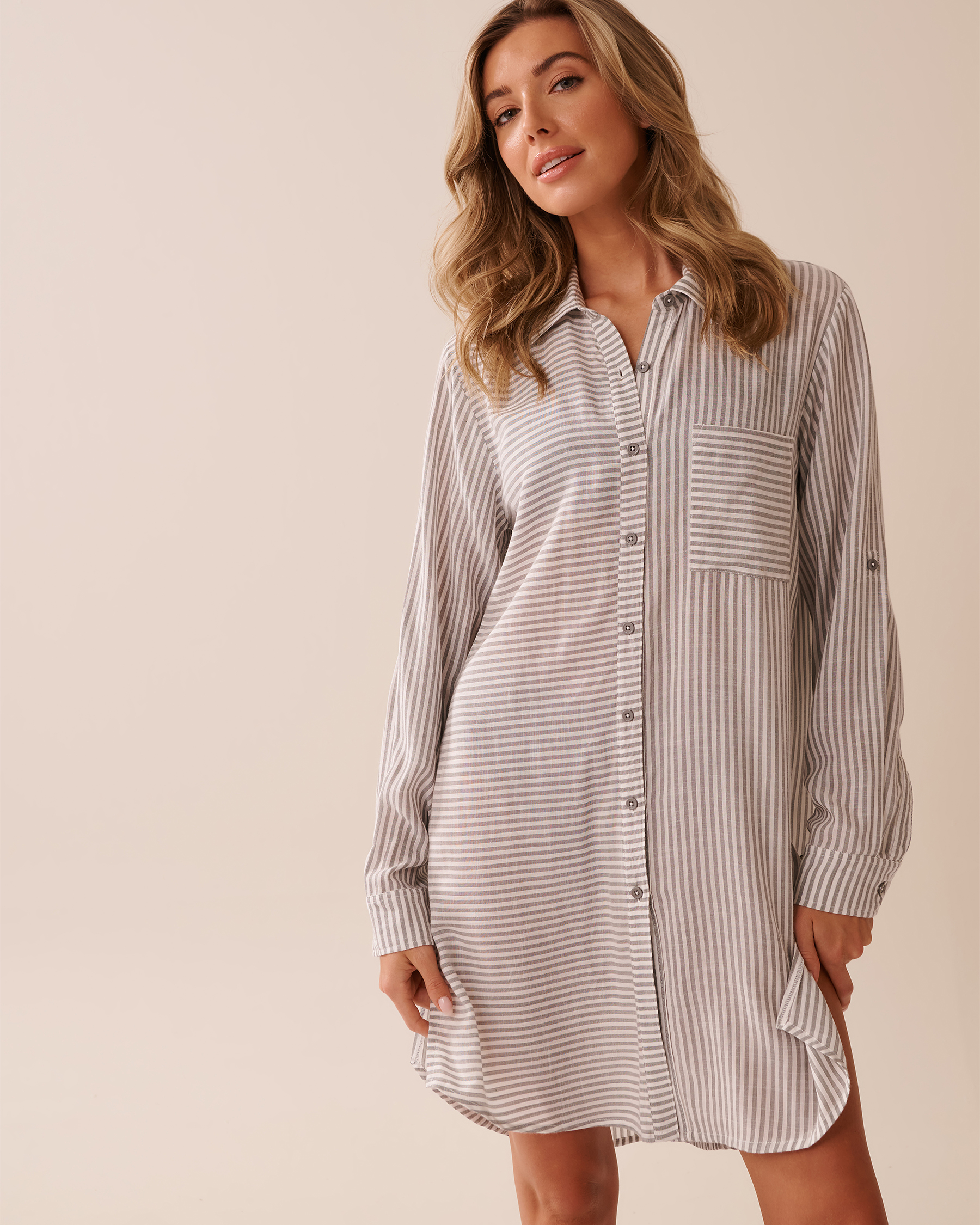 Embrace laid-back vibes with this striped, long button-down shirt. Its light fabric and relaxed fit make it a hot-weather staple! Wear it as a dress or pair it with your favourite shorts or leggings.