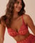 RED FLORAL TILE D Cup Plunge Bikini Top