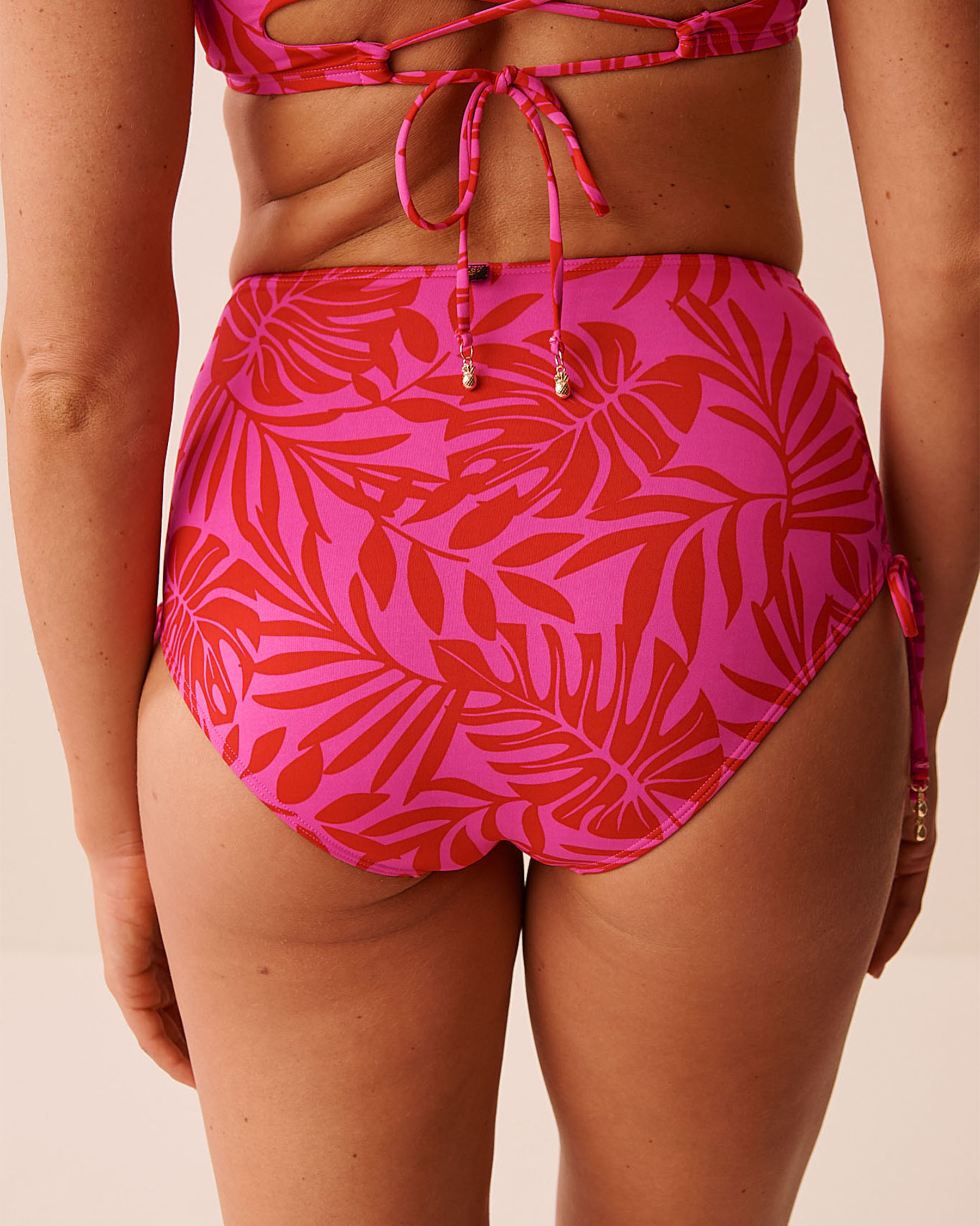 TROPICAL FUCHSIA Side Tie High Waist Bikini Bottom
