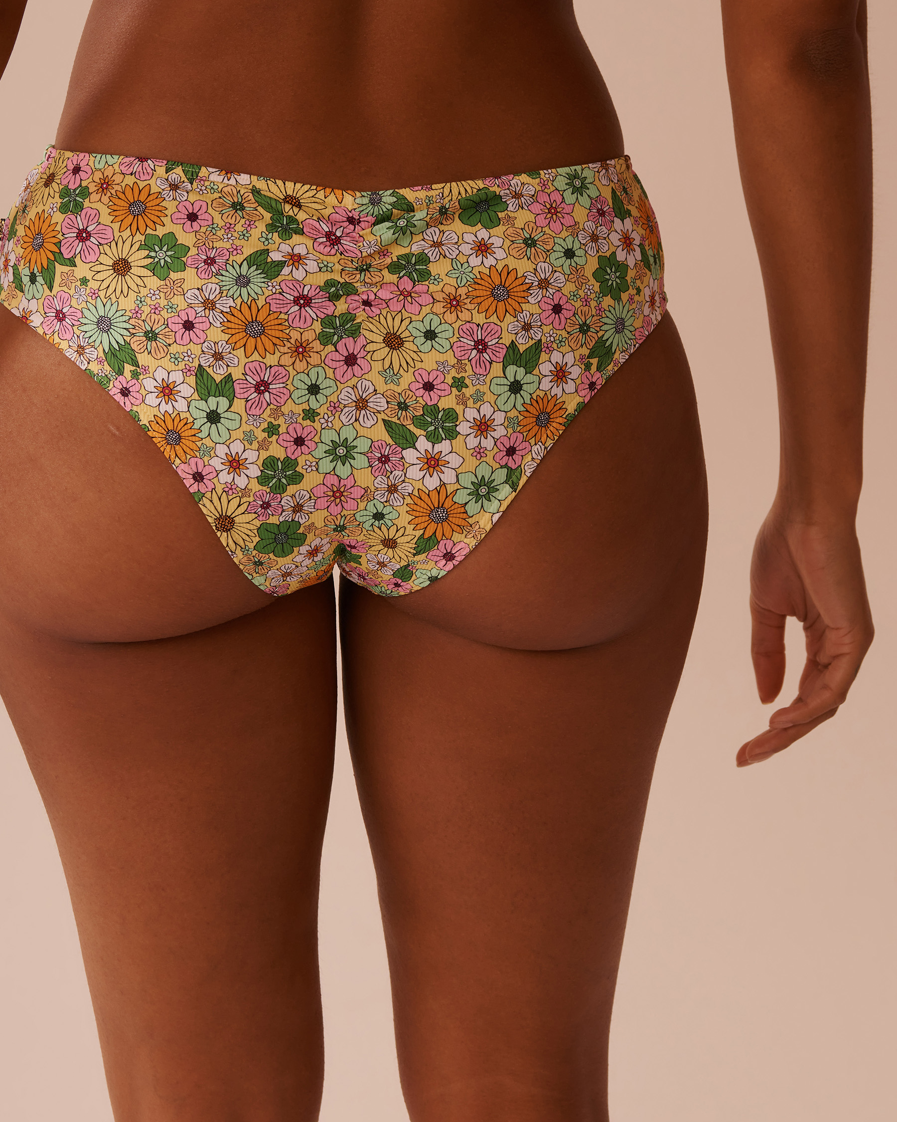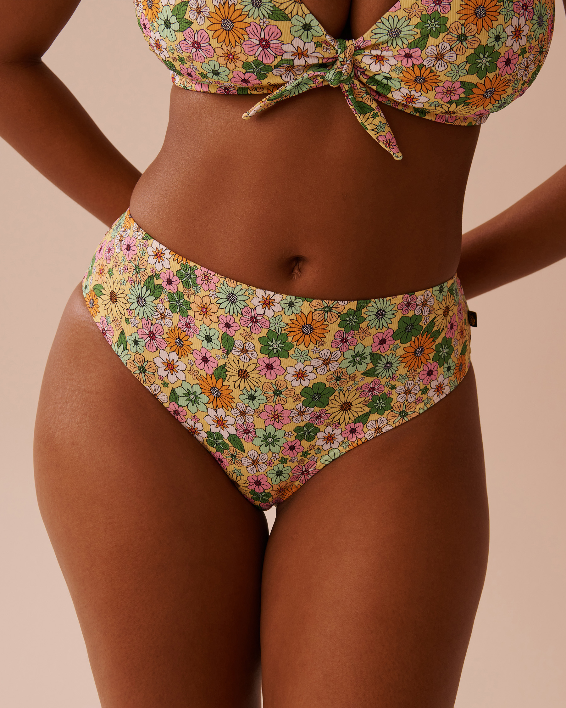 Bas de bikini cheeky taille mi-haute côtelé FLOWER POWER