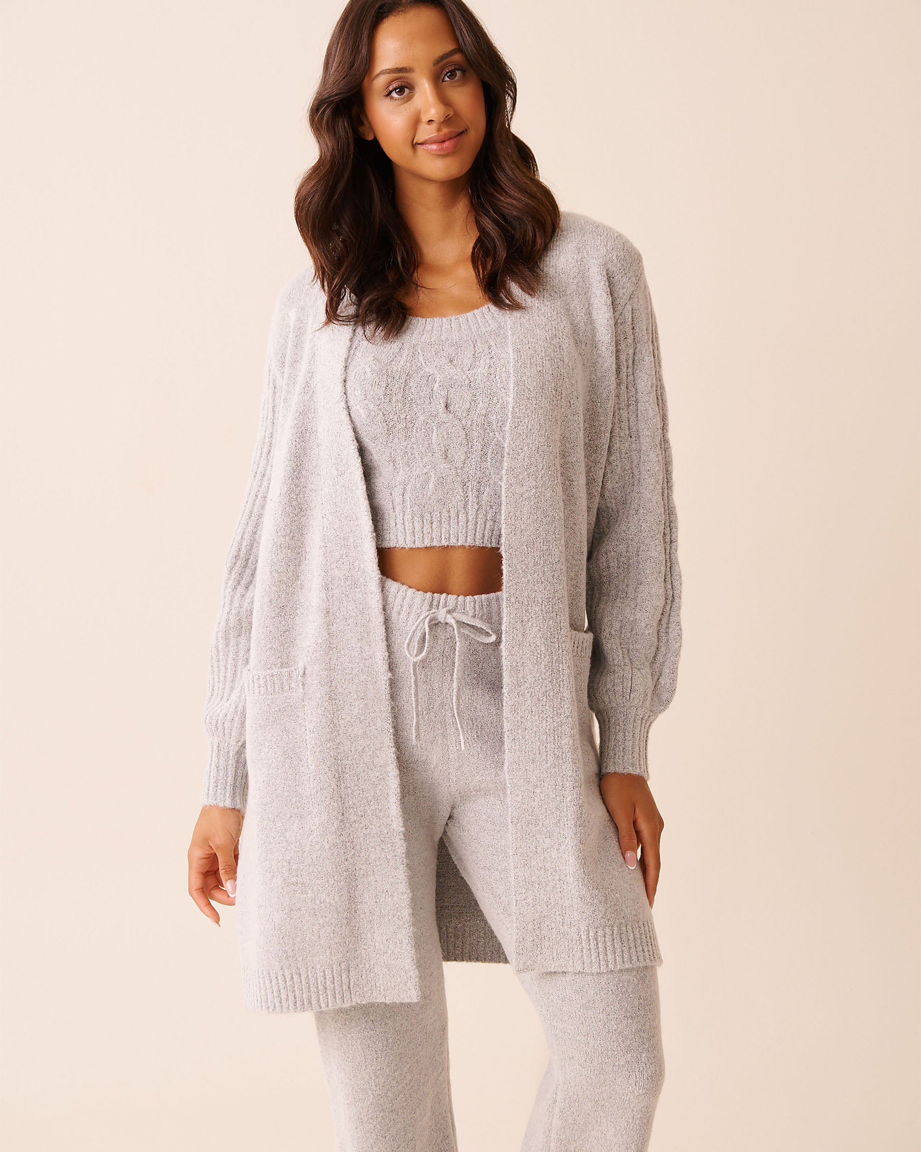 Un cardigan en tricot réconfortant et raffiné, ponctué de torsades. C’est le cardigan qui donne envie de s’étirer longuement, une tasse chaude entre les mains, et de savourer le calme qui s’installe.
