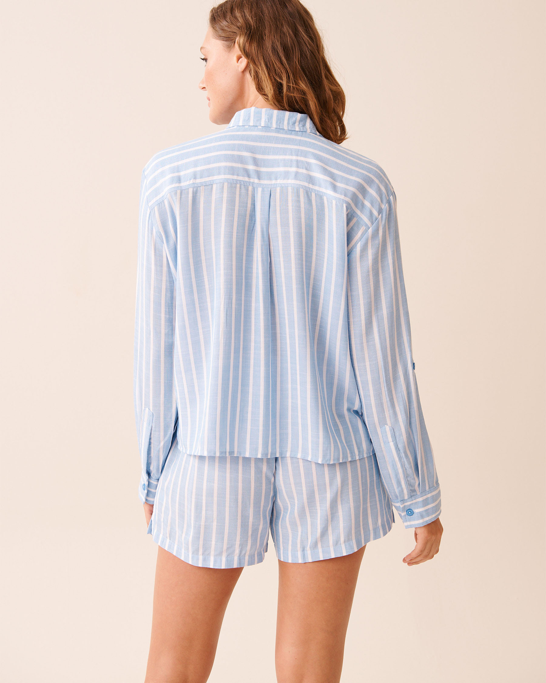 Pour les promenades les pieds nus dans le sable ou les cafés en terrasse qui s'éternisent, ce chemisier rayé a ce je-ne-sais-quoi de douceur estivale qui donne envie de ralentir, flâner et savourer l’instant.