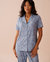 Des fleurs en éclosion se dessinent sur ce chemisier d'un bleu délicat. La microfibre, douce et légère, caresse la peau.