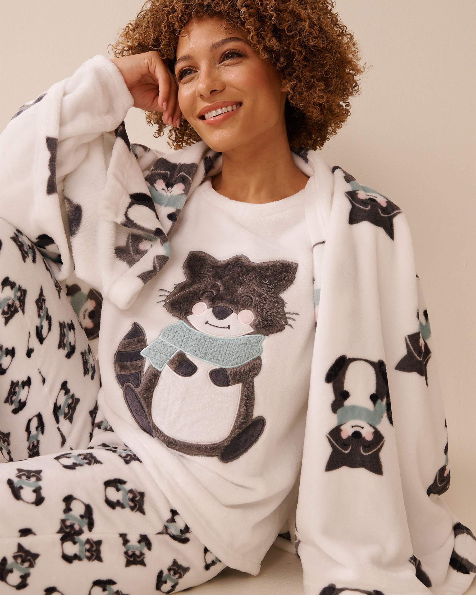Couverture en peluche douce imprimé raton laveur