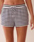 Notre tissu peau de pêche se pare d'intemporelles rayures marines. Avec son incroyable douceur et sa coupe confortable, ce short de pyjama vous fera rêver durant les périodes plus ensoleillées.