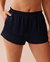 Avec sa riche couleur bleue, ce short en satin devient une pièce encore plus chic. Et parce que le confort est essentiel pour une tenue de détente parfaite, sa coupe est légèrement ample.