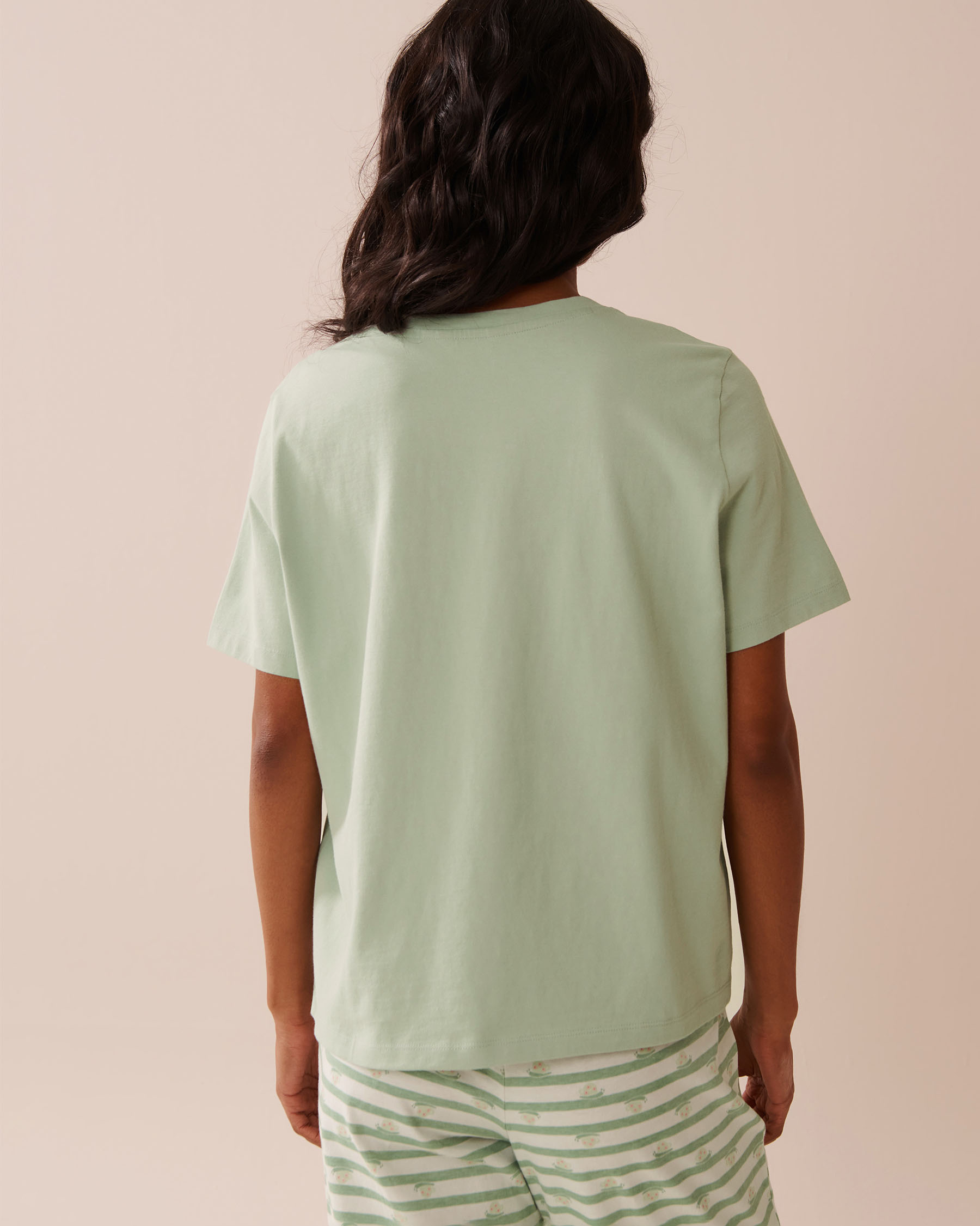 Un coton doux, respirant et des couleurs douces : ce t-shirt 100% coton est là pour vous accompagner lors de vos nuits d'été. Associez-le à nos bas de pyjama assortis!