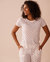 Un imprimé fraise qui capture la douceur des beaux jours et une teinte apaisante s'unissent pour vous offrir des instants de confort et de sérénité. La maille pointelle, ornée de ses fins motifs ajourés, et la bordure frisons de ce haut de pyjama séduiront les adeptes de détails délicats et raffinés.