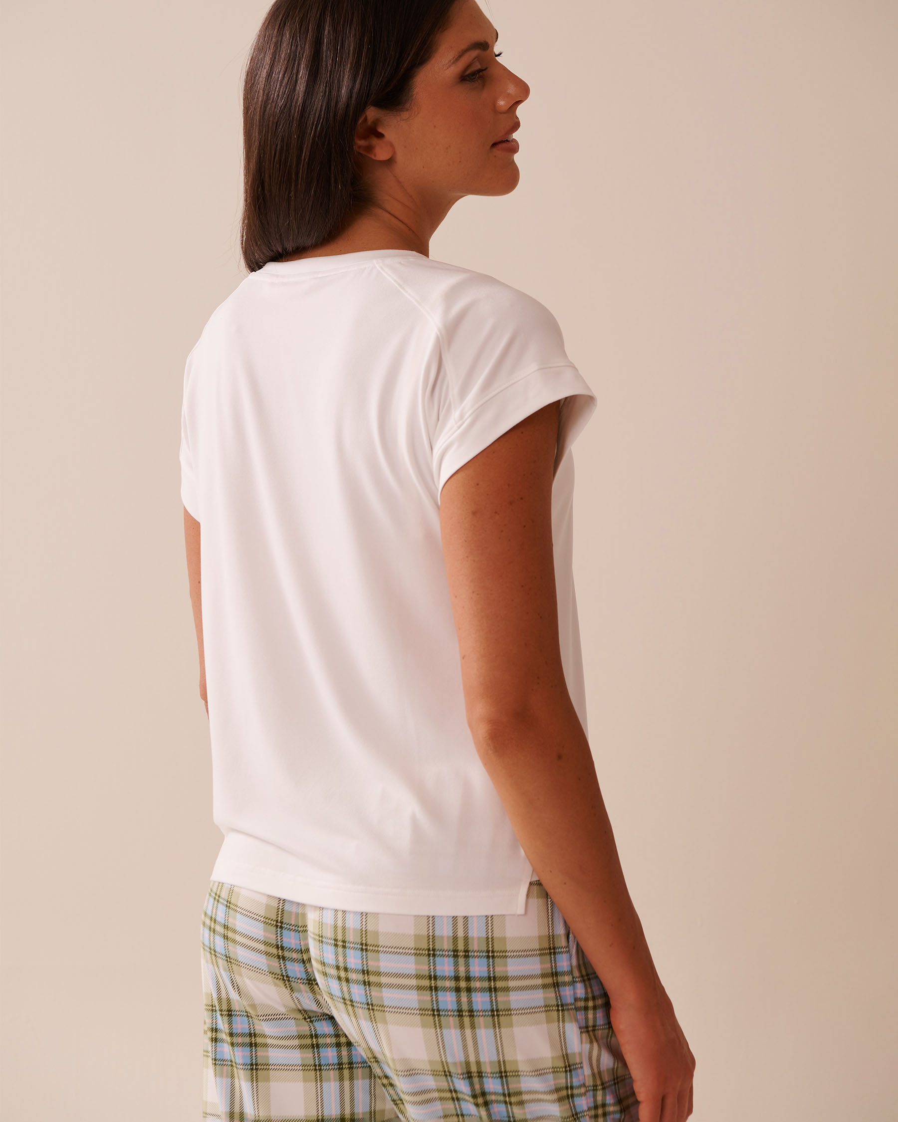 Après une journée bien remplie, on rêve d'enfiler un haut de pyjama aussi doux que celui-ci. Avec sa texture peau de pêche et son bas assorti, difficile de résister à l’envie de prolonger ce moment de confort… toute la journée.