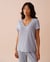 Comment ne pas craquer pour ce haut de pyjama? Les subtiles rayures bleues et le tissu à l'agréable toucher peau de pêche sont le duo parfait pour passer des nuits et des réveils tout en douceur. Associez-le aux pièces assorties pour un bel ensemble fantaisie.
