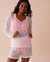 Cette légère tunique en tricot laisse entrevoir la peau et le maillot de bain. Ses pompons viennent la rehausser avec un peu de fantaisie.