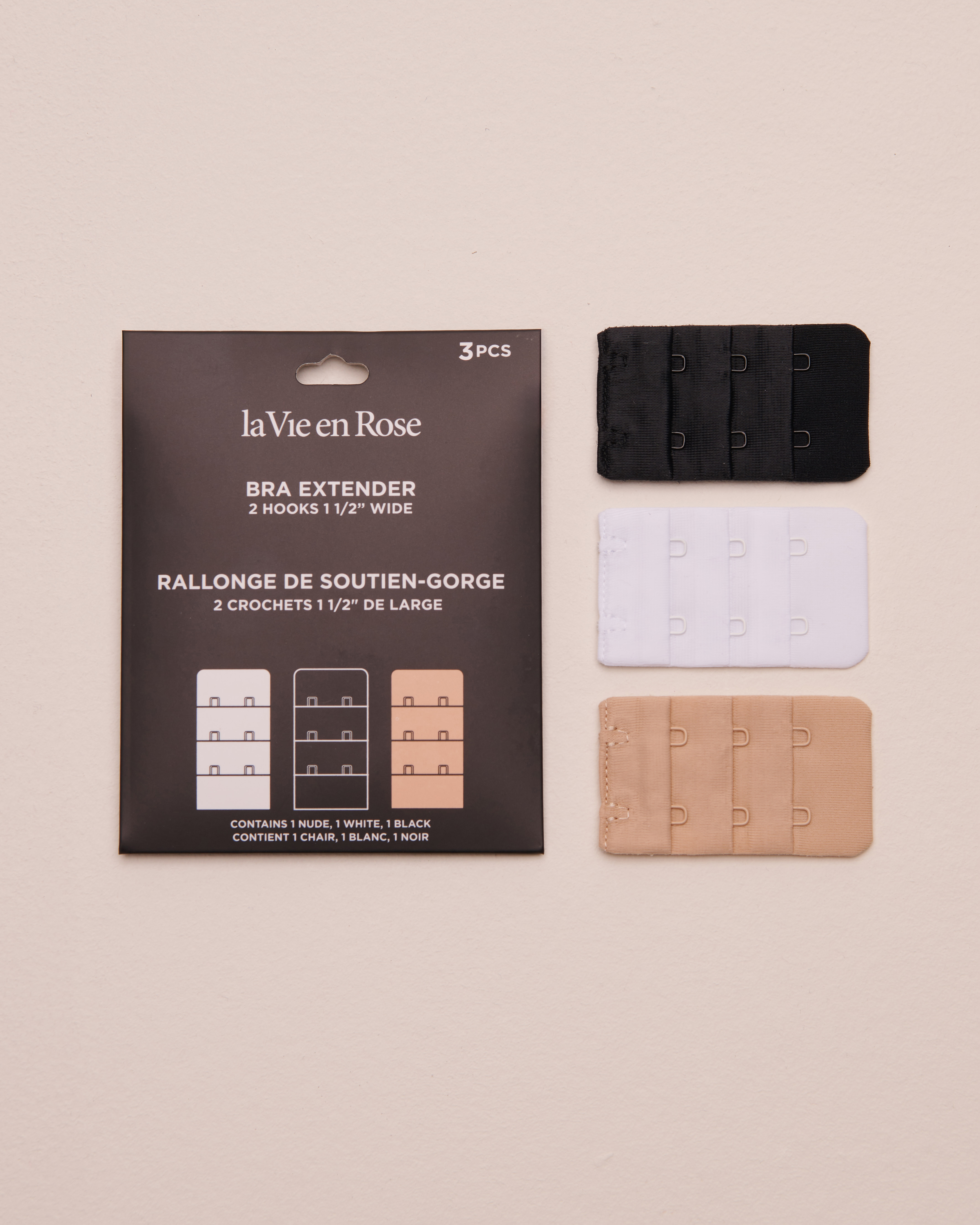 A simple solution to feel comfortable again in your bras that have become a little too tight! Our hooks bra extenders can be used to get rid of unflattering bulges in your favorite bras without having to buy new ones. They are perfect during pregnancy and breastfeeding. Includes a set of 3 color extenders: black, white, and beige. It matches all your favorite basic bras.