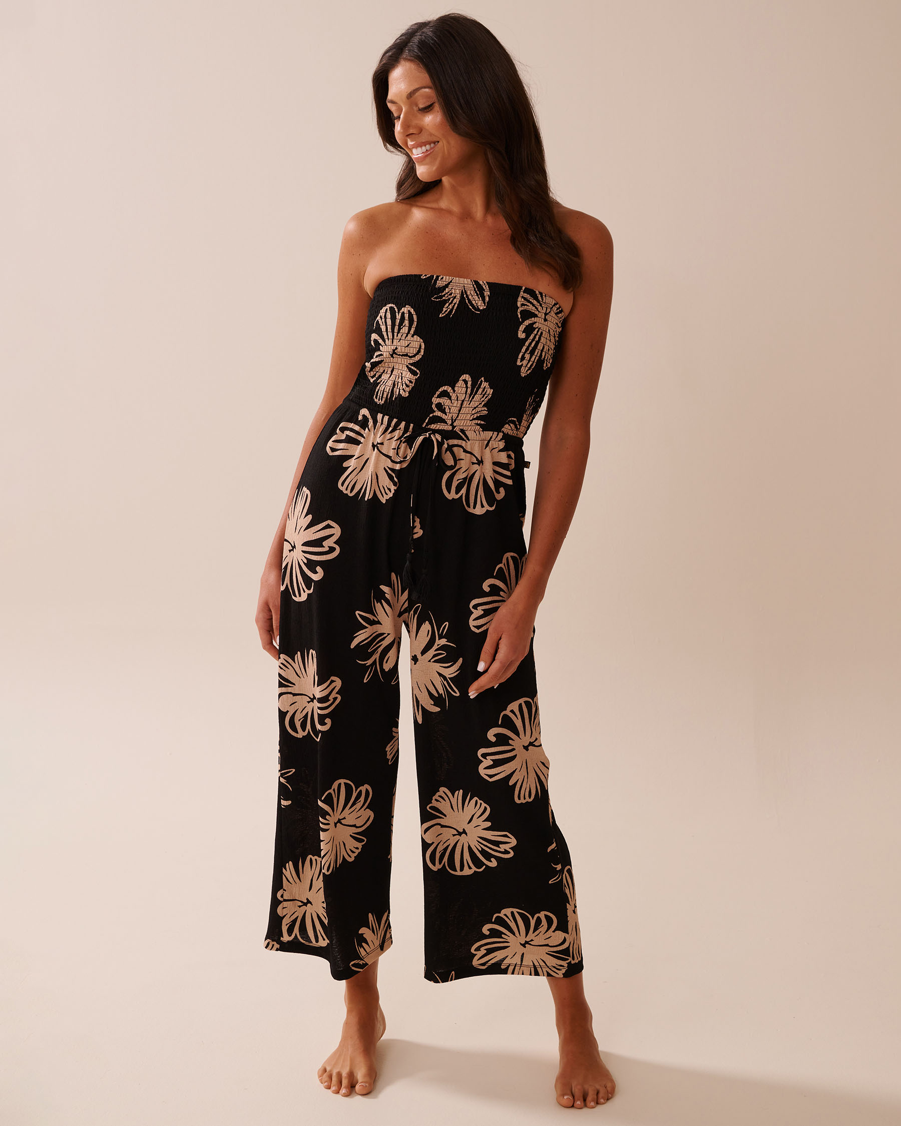 This jumpsuit is the kind of piece you throw on without thinking, wear all day, and always pack for a getaway. The smocked bodice fits comfortably without feeling tight, the wide legs move with the breeze, and the bandeau top is perfect for soaking up the sun—no tan lines.