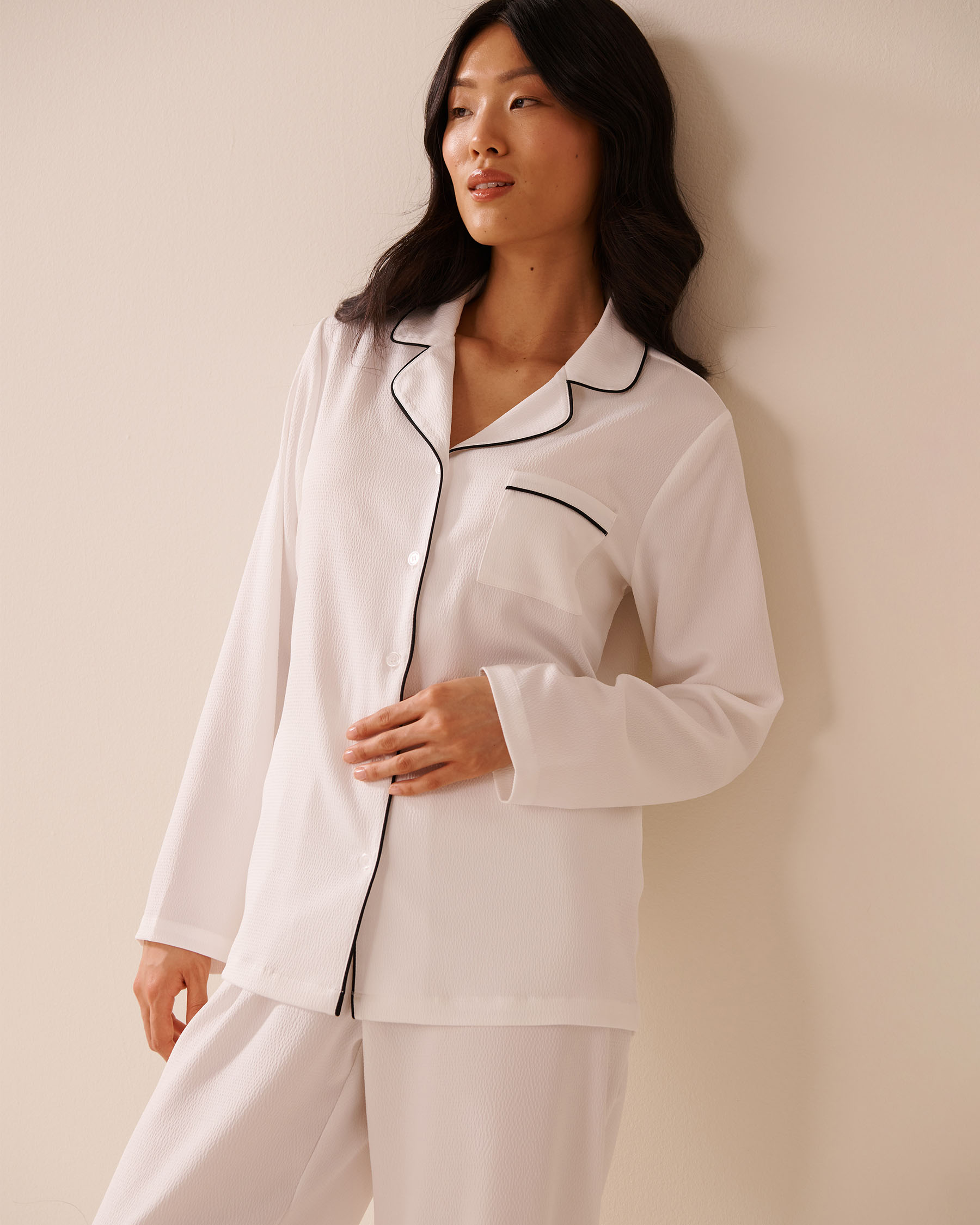 Long Sleeve Textured Satin PJ Set