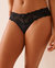 Microfiber and Wide Lace Band Thong Panty