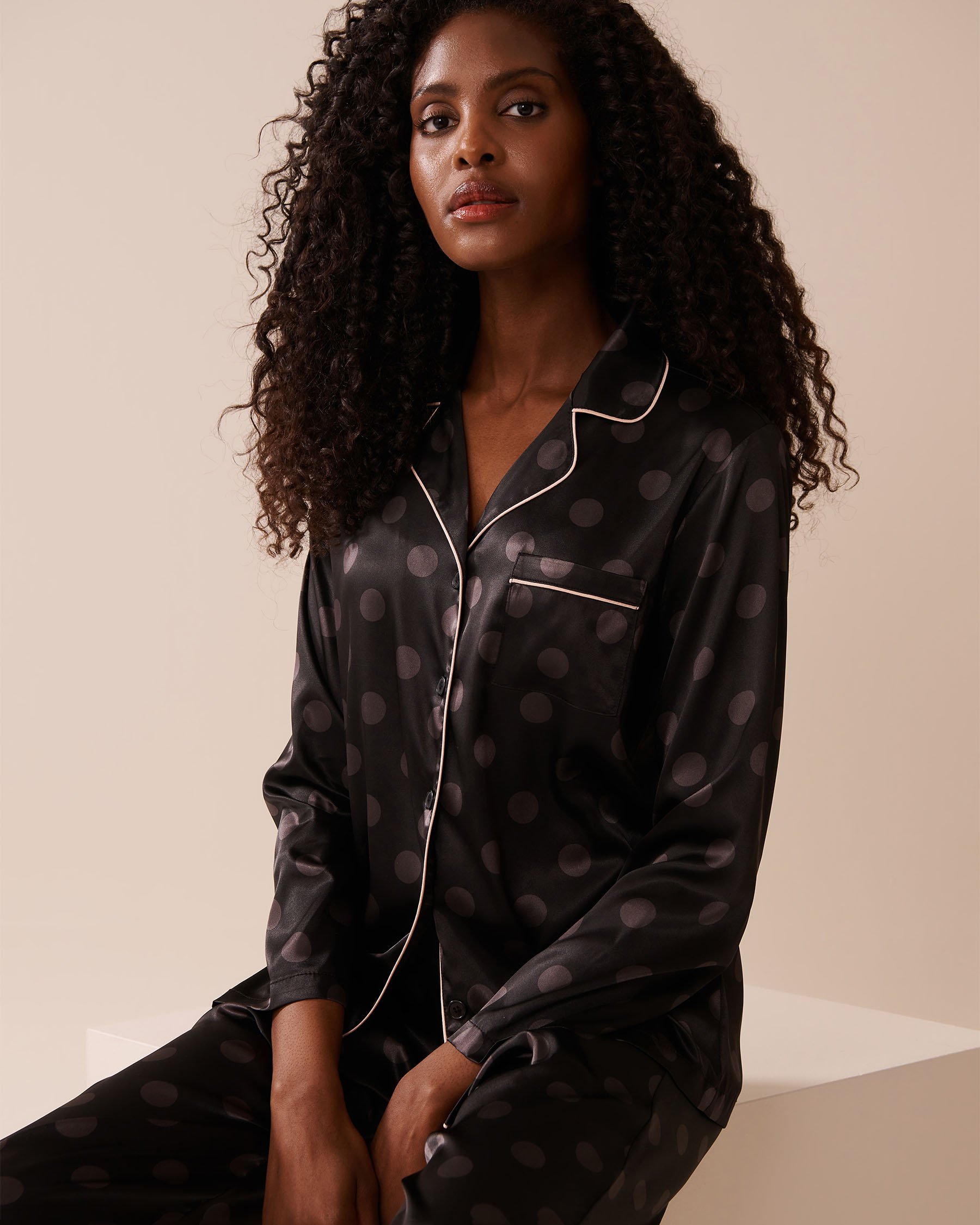 This satin PJ set is the perfect addition to any night in, with a luxurious look and feel. Throw it on, slide into those cool sheets, enjoy some me-time.