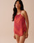 RED FLORAL TILE Halter Tankini Top