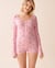 Skiing Bear Print Pointelle Long Sleeve Romper