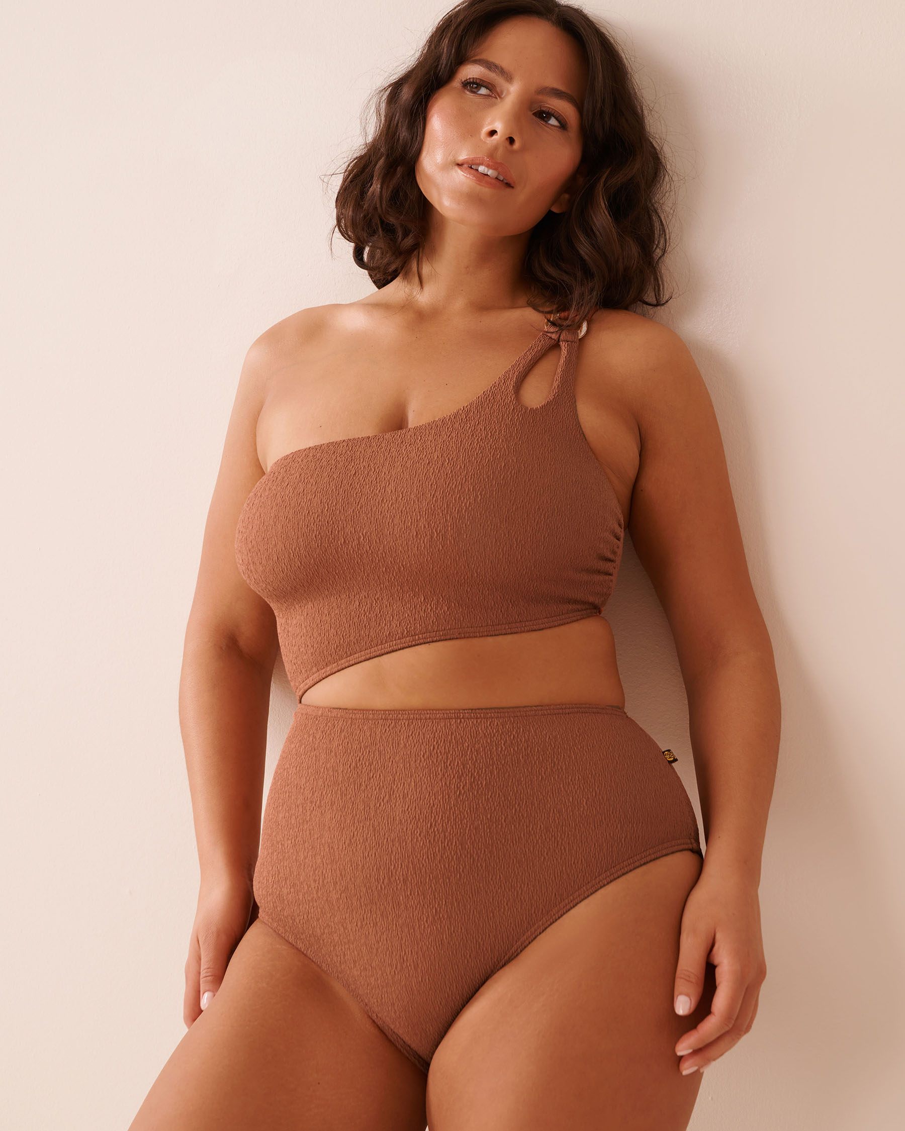 TERRACOTTA Textured Cut-out One Shoulder One-piece Swimsuit